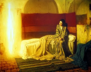 One night, into the bedroom of this young girl comes the brightly beaming divine messenger Gabriel whose name means, “God has shown himself mighty” (Luke 1:26-38). Mary stands there in her flannel nightgown, her life very quickly moving from the ordinary to extraordinary. The juxtaposition could not be more pronounced: mighty angel and a plain teen-ager; messenger of the Most High God and a girl barely past puberty; holy angelic light in a simple candlelit bedroom; awesome power and complete vulnerability.