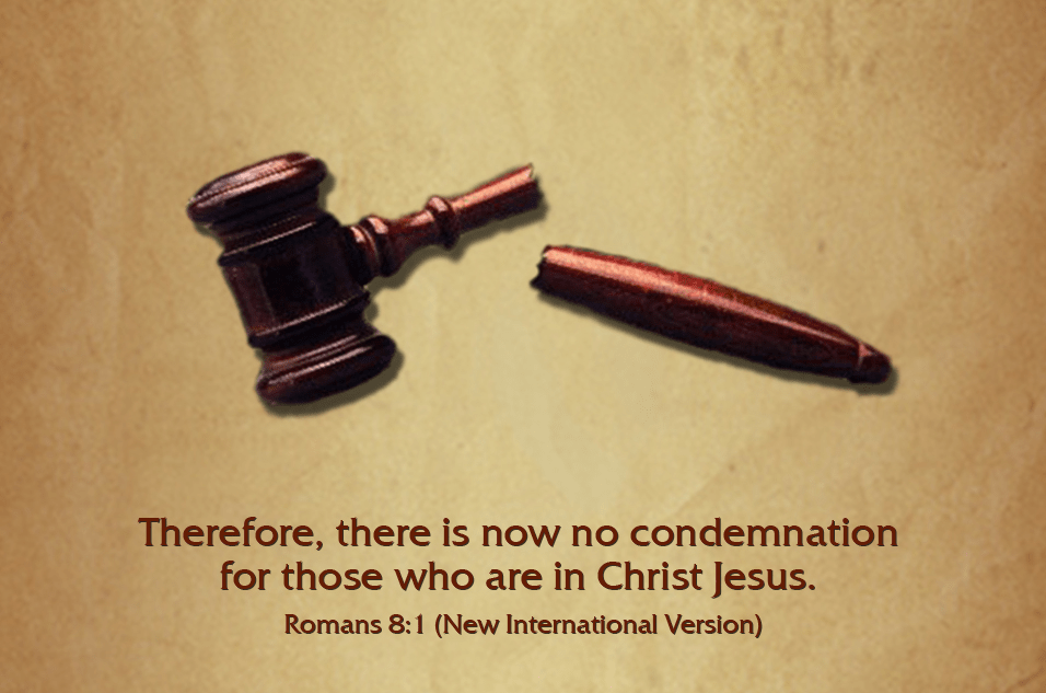 There is now no condemnation, no judgment, for us who are in Christ. God has pronounced a verdict, and that decision is final. We have been united to Christ by means of God’s Spirit. Since God condemns neither you nor I, there is no need whatsoever to condemn ourselves or other believers.