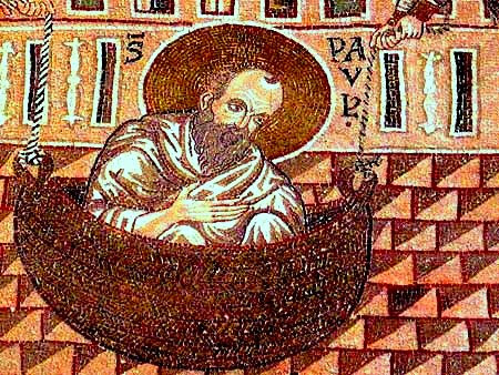 In the Roman army, the soldier with the greatest strength and valor was the one who scaled the enemy wall first. The courageous ascent of the Roman soldier is viewed alongside the inglorious descent of Paul along the wall in escaping.