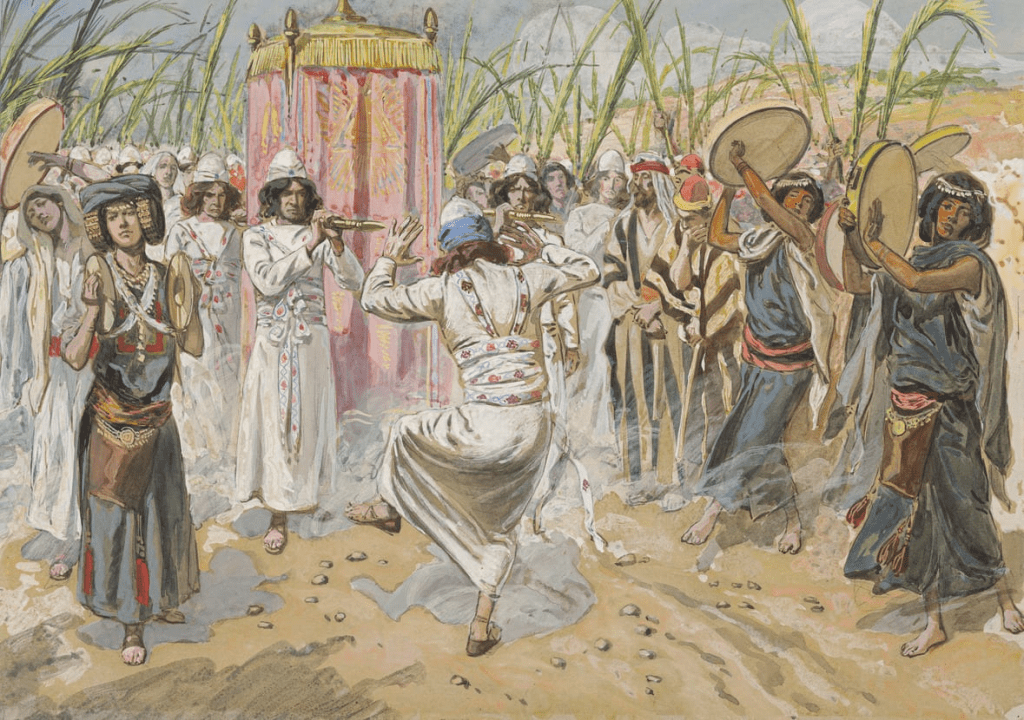 The liturgical procession which moved the Ark of the Covenant was a grand and festive group, including military commanders, the elders of Israel, and the Levites. It was a celebration involving plenty of music, singing, and sacrifices. (1 Chronicles 13-14; 2 Samuel 6:12-19)