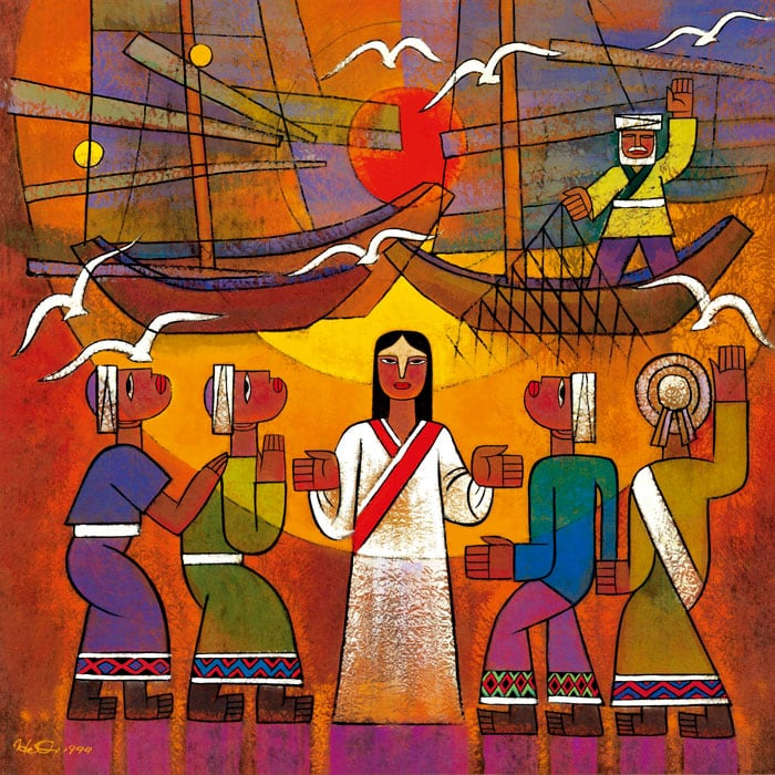 As Jesus passed along the Sea of Galilee, he saw Simon and his brother Andrew casting a net into the sea, for they were fishers. And Jesus said to them, “Follow me, and I will make you fishers of people.” And immediately they left their nets and followed him. As he went a little farther, he saw James son of Zebedee and his brother John, who were in their boat mending the nets. Immediately he called them, and they left their father Zebedee in the boat with the hired men and followed him. (New Revised Standard Version)