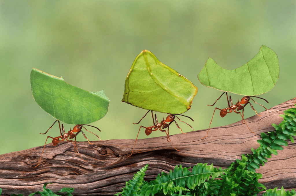 Ants: they are weak, but they store up their food in the summer.