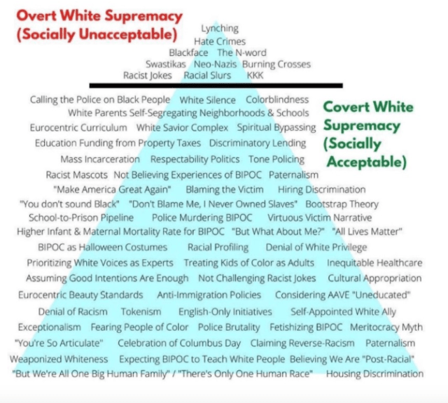 Christ’s admonition is to watch ourselves, to be vigilant of both overt and covert sins against the unseen and forgotten amongst us. The pyramid below concerning racism is just one example of many other forms of causing others to stumble and fall:
