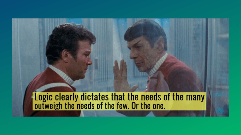 It’s important that everyone considers what the Lord’s will is – not only personally – but for the common good of all the people. Perhaps this idea is captured best in the fictitious Star Trek adage of the alien Vulcans who would logically examine a decision and say, “The needs of the many outweigh the needs of the few (or the one).”